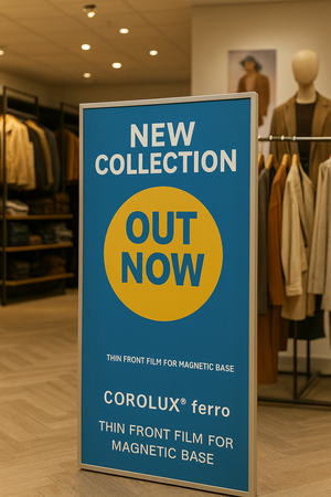 COROLUX ferro is een dunne, bedrukbare frontfolie met een ijzerhoudende achterkant. Ze hecht op een eerder aangebrachte magneetfolie (magneetbasis) – ideaal voor niet-magnetische wanden, meubels of panelen. Het systeem is ontworpen voor frequente motiefwissels en meerlagige toepassingen.